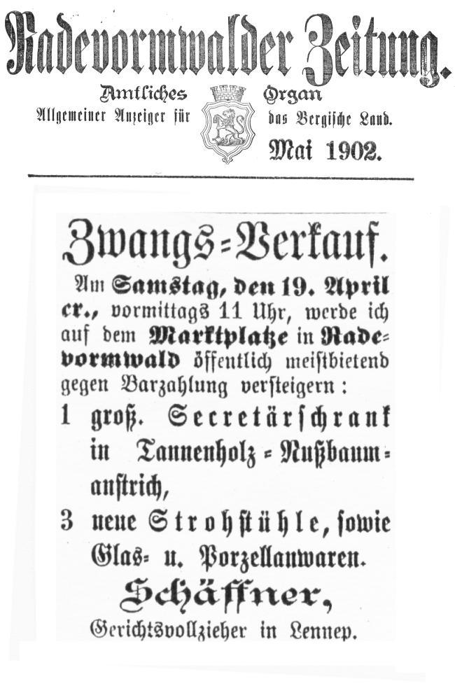 Zwangsverkauf von Strohstühlen, Porzellanwaren und einem Sekretärschrank in Tanne