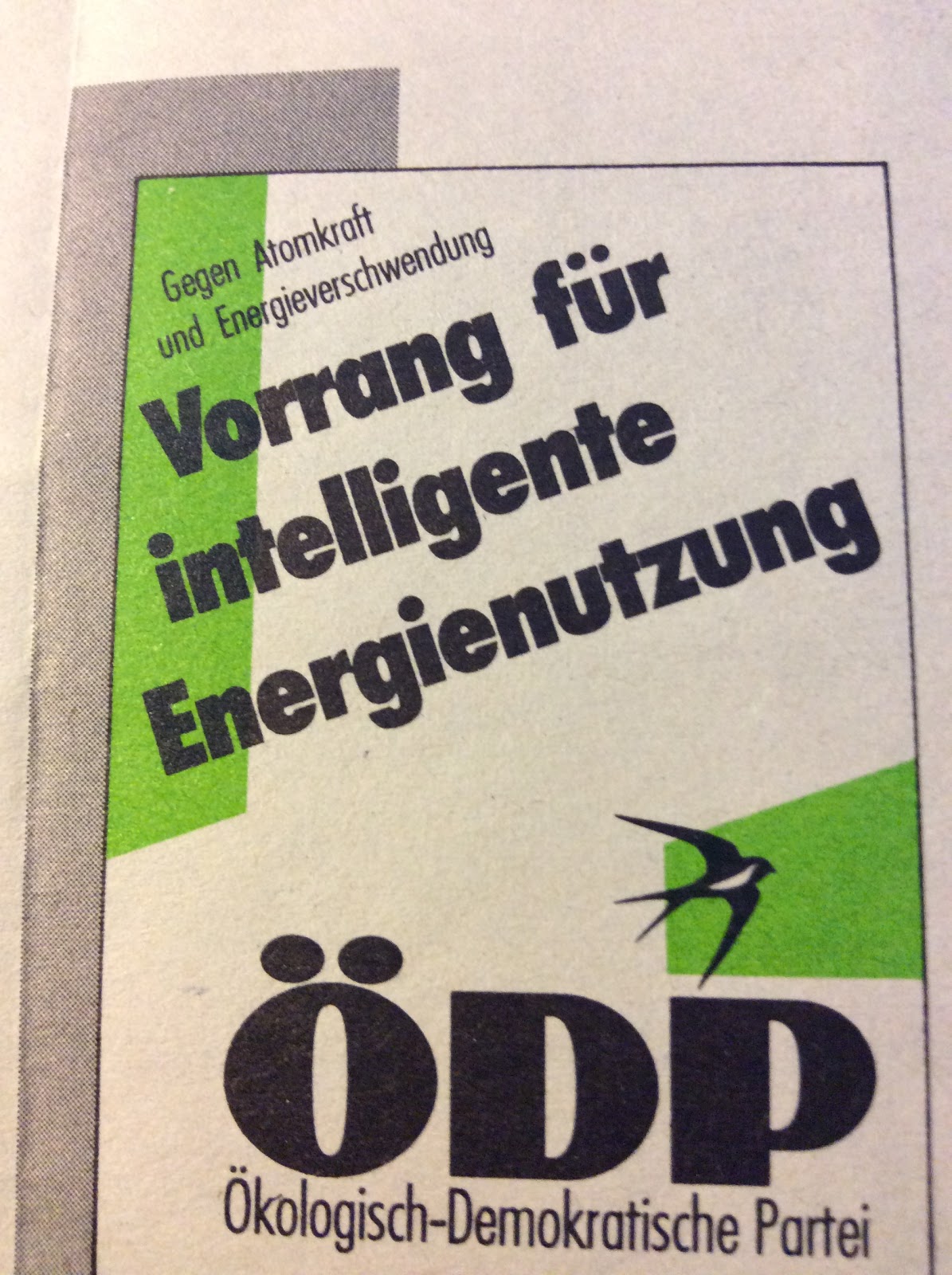 | ÖDP- Plakat zur Landtagswahl in Baden Württemberg 1992 zur Energiepolitik |
