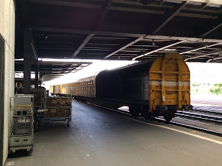 über die Schiene befördert. Oberhalb der Postladestelle das